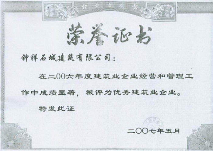 2007年5月被評(píng)為優(yōu)秀建筑業(yè)企業(yè)