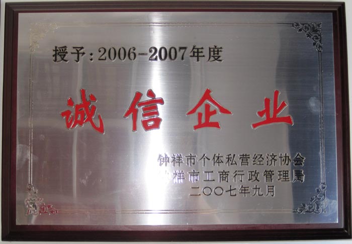 2007年9月被評(píng)為“2006-2007年度誠(chéng)信企業(yè)”