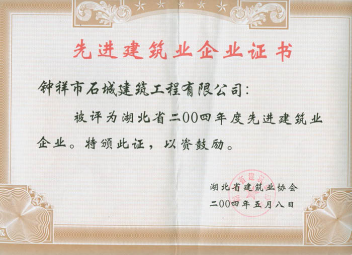 被評(píng)為湖北省2004年度先進(jìn)建筑業(yè)企業(yè)
