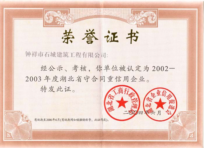 被認(rèn)定為2002-2003年度湖北省守合同重信用企業(yè)