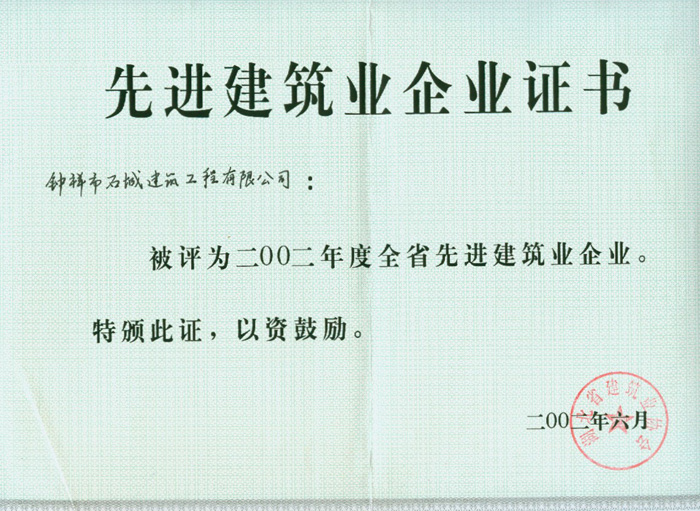 2002年6月被評(píng)為2002年度全省先進(jìn)建筑業(yè)企業(yè)