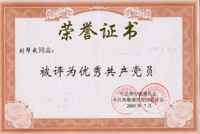 2003你那7月劉幫武被評(píng)為優(yōu)秀共產(chǎn)黨員