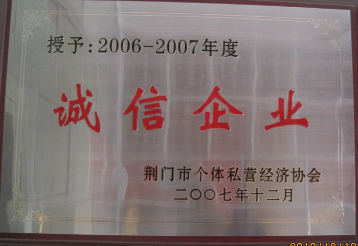 2007年12月被授予2006-2007年度誠(chéng)信企業(yè)